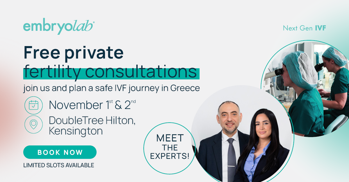 Embryolab Fertility Clinic, one of the leading fertility clinics in Europe, will offer private fertility consultations by our specialists on 1-2 November 2025